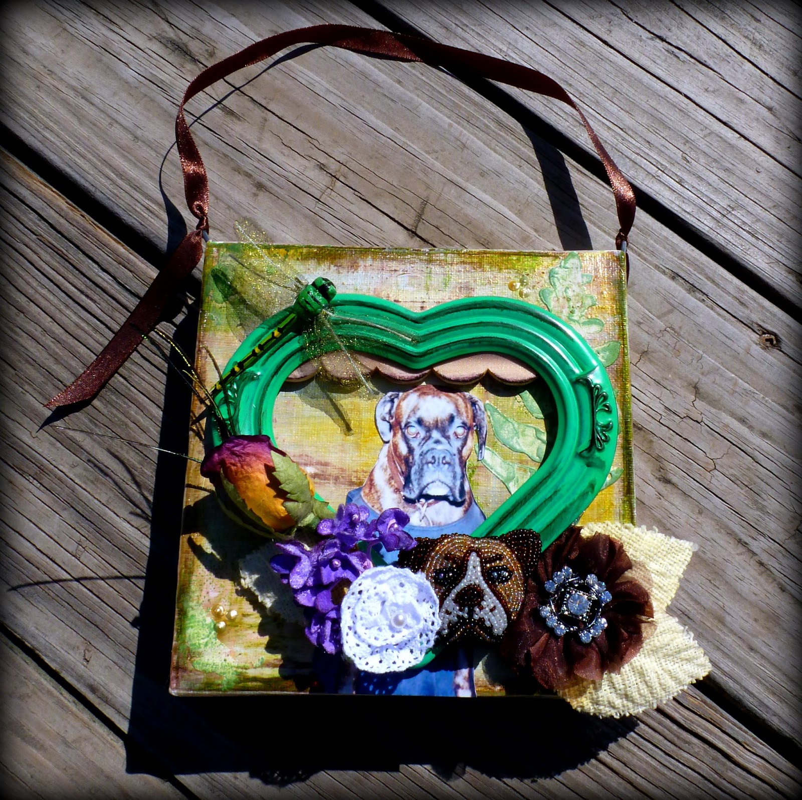 ReplyDeleteOhh your poor pooch!! Reminds me of the cat we had, my daughter never played with dolls in her pram, just used to dress the cat up in bonnet and bootees, all wrapped up in a lacy shawl!! Sorry for the digression, spaced out on anti-d's atm. That frame is just right for a big girl's memories of her pooch. Just love the green patina'd frame!